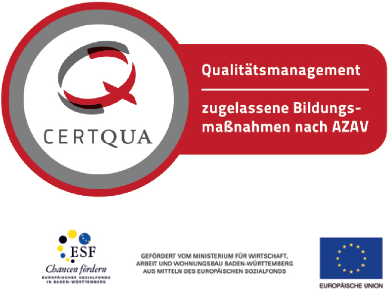 Dieser Kurs ist nach AZAV zertifiziert. Sie haben daher eventuell die Möglichkeit einen Bildungsgutschein der Agentur für Arbeit, der Jobcenter oder der Landratsämter zu erhalten. Der Gutschein ermöglicht Ihnen eine Kostenübernahme bis zu 100%.